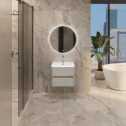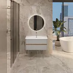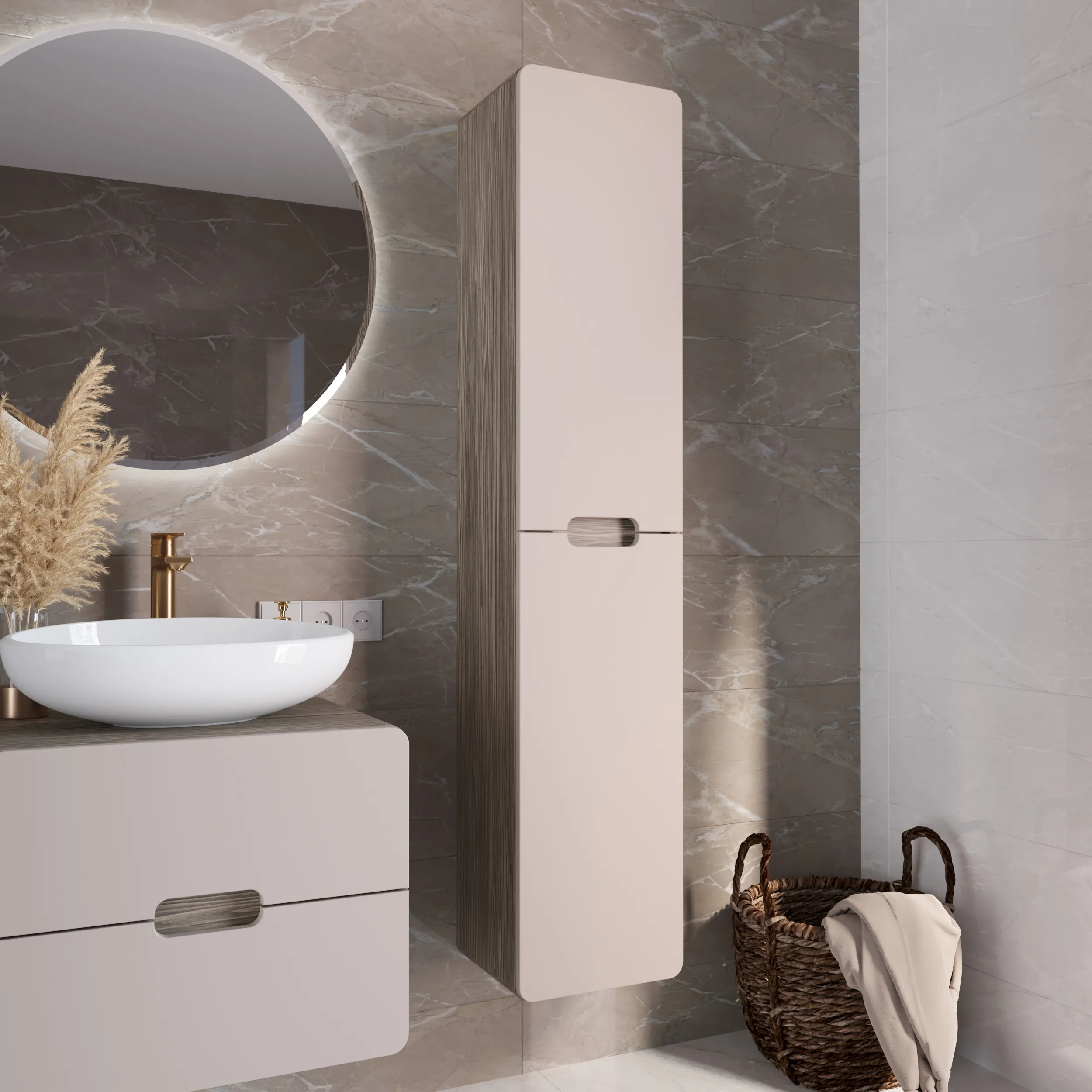 Подвесной пенал для ванной – современное минималистичное решение. Плавные скругленные углы символизируют гармонию, создают ощущение легкости и безопасности. Это особенно актуально в комнате, где важно чувствовать себя комфортно и расслабленно. Тонкие оттенки кофейного фасада и орехового древесного корпуса воплощают в себе элегантность и теплоту, их сочетание делает ванную идеальным местом для отдыха и ухода за собой.Характеристики: