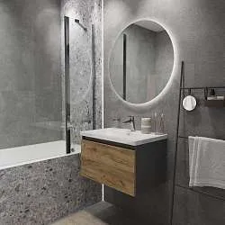 Тумба для современной или эклектичной ванной комнаты с тремя вместительными выдвигающимися ящиками, дополненными оригинальными ручками. Она создана специально для поклонников актуальных решений в дизайне мебели для ванной комнаты, поэтому отличается лаконичным дизайном, отсутствием лишних деталей и бескомпромиссной функциональностью. Ее дополнительное преимущество состоит в благородном сером цвете корпуса. Разделение ящиков на функциональные отсеки делает ежедневное использование тумбы еще более удобным и комфортным.