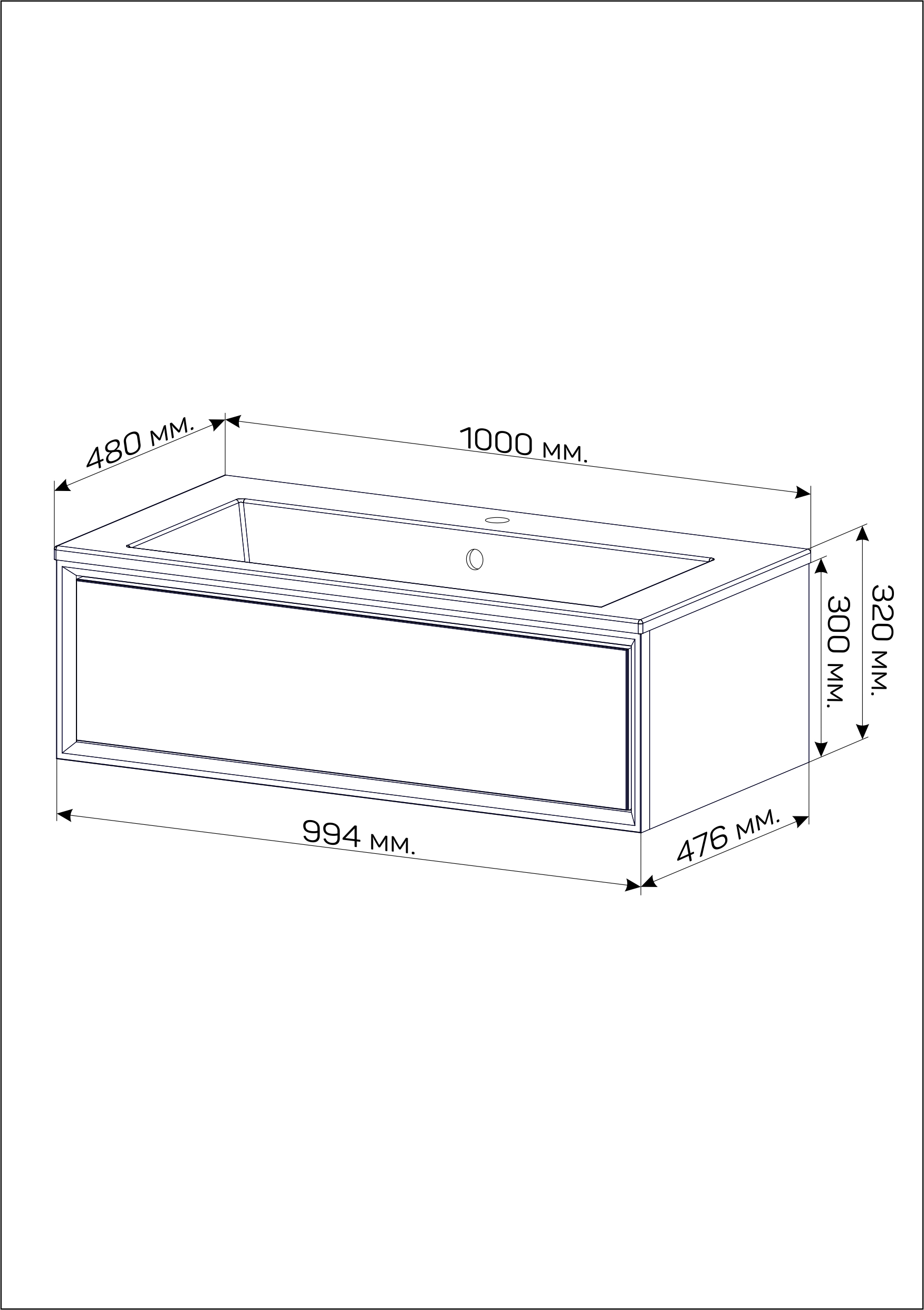 Тумба под раковину МИЛАККО/Milacco 100П (994х300х476) 1я белый (верх)