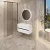 Матовый фасад, интегрированные ручки, керамическая раковина* с широкими бортами и полки в трендовом графитовом цвете придают интерьеру строгость, изящность и подчеркивают его уникальный характер. А белый цвет делает тумбу подходящей для большинства интерьеров ванной комнаты.
