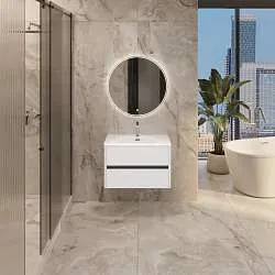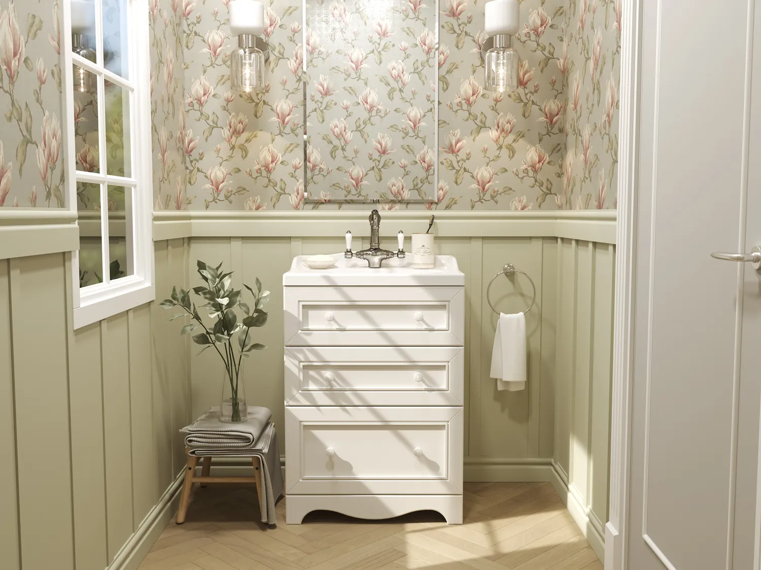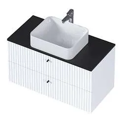 Тумба с раковиной, воплощающая собой легкость, элегантность и вневременной дизайн, который остается актуальным вне зависимости от мимолетных модных тенденций. Изящный фасад с фрезеровкой и глубокая раковина с высокими бортами создают невероятное сочетание эстетики и функциональности, которое будет актуально в пространствах любой стилистики - от сдержанных и благородных традиционных до стильных современных и смелых эклектичных. Нижний ящик тумбы имеет увеличенные габариты для удобного хранения бытовой химии и прочих крупных предметов, а два верхних ящика небольших размеров идеальны для размещения косметики и аксессуаров.Характеристики: